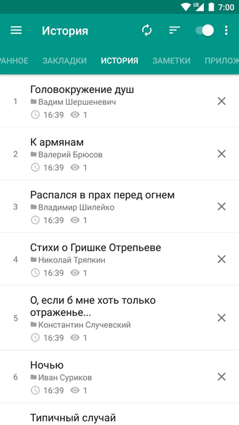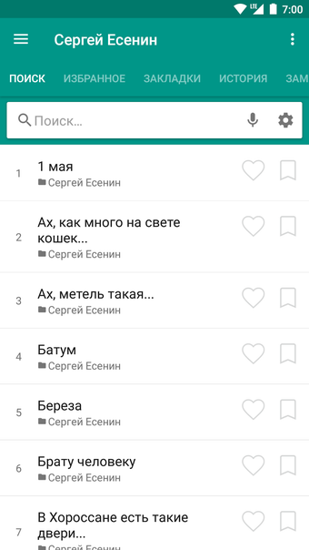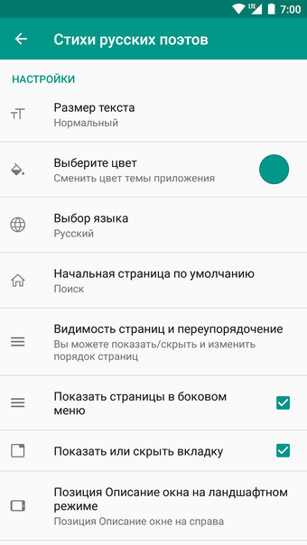 Appen innehåller också användbara funktioner som möjligheten att skapa bokmärken, spara visade ord i en historik och dela innehåll med andra applikationer. Med inställningar för att ändra textstorlek och färgschema kan användare anpassa sin upplevelse. En interaktiv beskrivningsruta gör det enkelt att utforska innehållet, vilket gör Стихи русских поэтов till ett utmärkt verktyg för både studenter och poesiälskare.